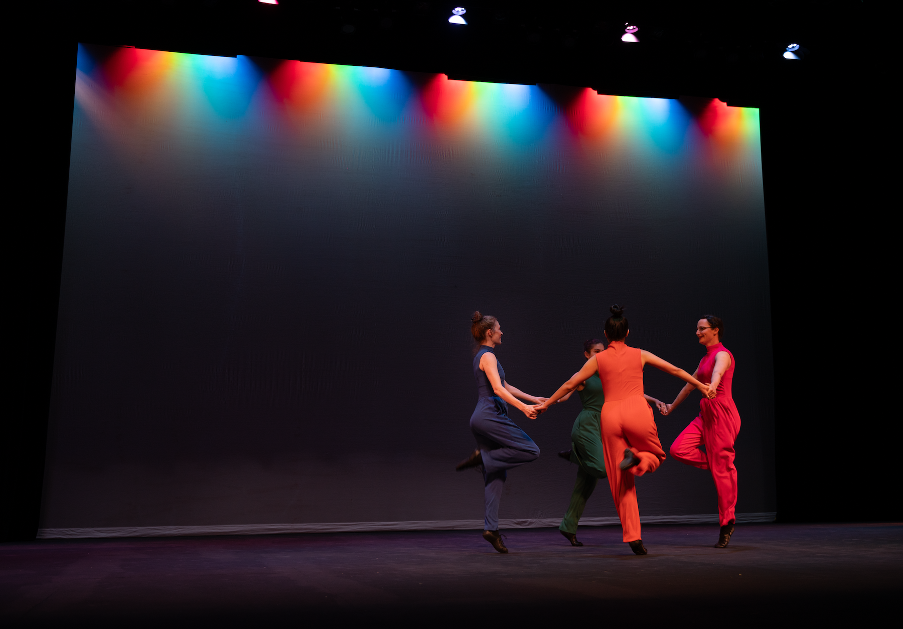 Choreography by Kate Spanos. Performed by Maggie Hensler-McGinnis, Rebecca McGowan, Moira Ragen, and Kate Spanos. International Dance Festival, Prince George's Publick Playhouse. May 2025. Photo credit: Oscar Mata.